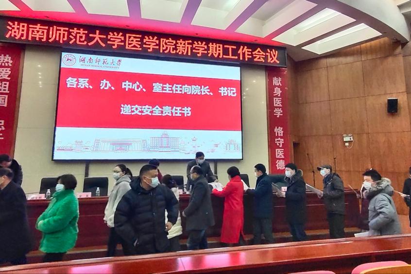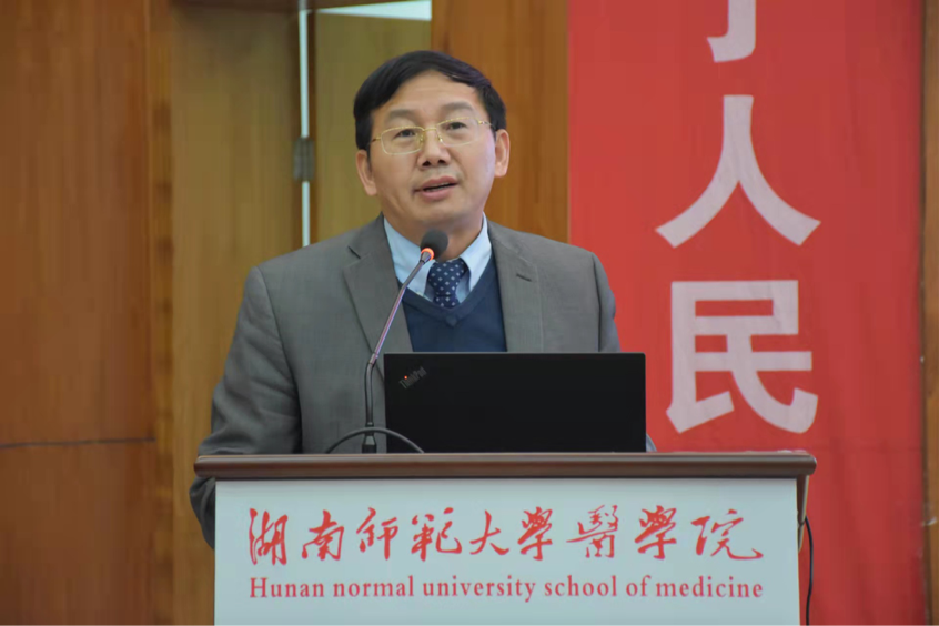 医学院党委书记鄢朝晖传达我校新学期会议工作精神,传达了刘起军校长围绕教师教育高质量发展、全面深化教育评价改革、全力推进“十四五”规划落地落实等三个方面作出的重点部署。同时,要把蒋洪新书记所说的“始终把人才视作发展的原动力,注重人才培养、精准引育优秀人才,建立顶尖人才引育计划、出台更有温度和力度的人才新政,巩固人才培养中心地位,切实服务国家和湖南的战略需求,推进学校'双一流'建设”落实到位。
