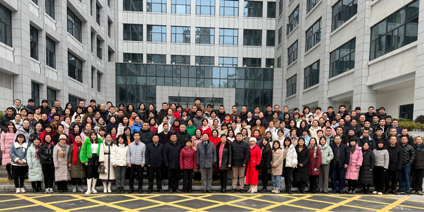在各系、办、中心、室主任向院长、书记递交安全责任书后,全体教职工在综合楼前拍摄了医学院全家福。
