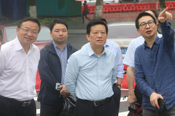 长沙麓山投资控股集团有限公司总经理许博介绍了建设的有关情况。蒋洪新对道路、花圃、墙面等进行了考察,并就植被绿化工程、消防通道安全管理、施工现场安全保障、校园文化建设等问题提出意见要求。