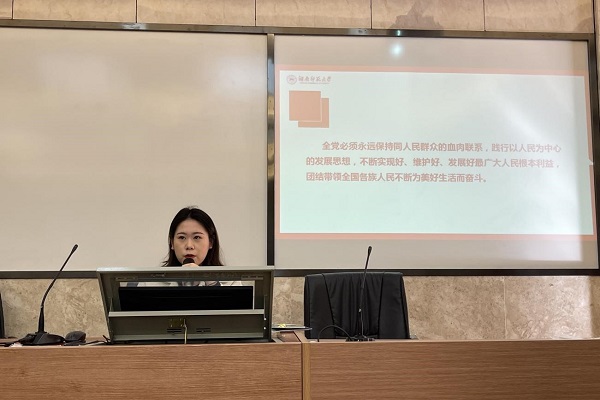 此次学习交流会主持人冯珂瑶深入讲解了中国共产党百年历程中的四个“重大飞跃”,强调学生会成员应该切实增强“四个意识”、坚定“四个自信”、做到“两个维护”,自觉做习近平新时代中国特色社会主义思想的坚定信仰者和忠实践行者。同时她认为,作为学生干部的我们,应将党的十九届六中全会精神融于学生工作当中,在实践中运用习近平新时代中国特色社会主义思想。