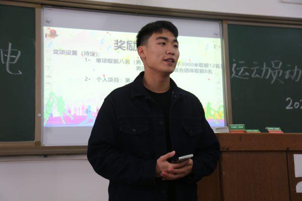 (通讯员 王贻菲 马鲜花 曹馨怡)11月2日中午,物理与电子科学学院于格物楼216教室举行校运会动员大会。2021级辅导员韩翔宇出席活动,学生会文体部干事伍欢担任主持人。