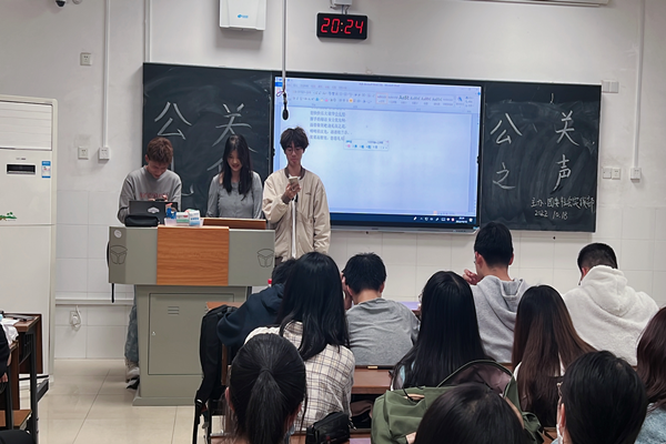 此次活动由袁皓林主持,通过由传唱度较高的《孤勇者》改编的趣味歌曲和《千年一声唱》这两首歌来引入本次课程主要内容。在主持人介绍完活动内容和相关要求后,学员们以小组为单位开始为时三十分钟的自由创作。学员们积极讨论,作品完成后,各组进行展示。在小组展示环节,同学们的作品形式多样,内容紧扣公关礼仪主题,包括唱歌、诵读、讲解和情景剧,如新编诗词创作《归乡赋》,歌词改编《雅俗共赏》,三句半《讲文明懂礼貌》和打油诗《礼仪之美》等。社实部成员刘凤玲对学员们的作品和此次活动的具体情况分别进行点评和总结。此次活动不仅扩展了课程学习的内容和形式,检验了同学们的学习效果,还加深了学员们对公关礼仪知识的了解,提高了学员的创作能力和创新能力,促进了学员之间的交流合作。