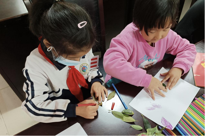 小朋友们制作拓印画