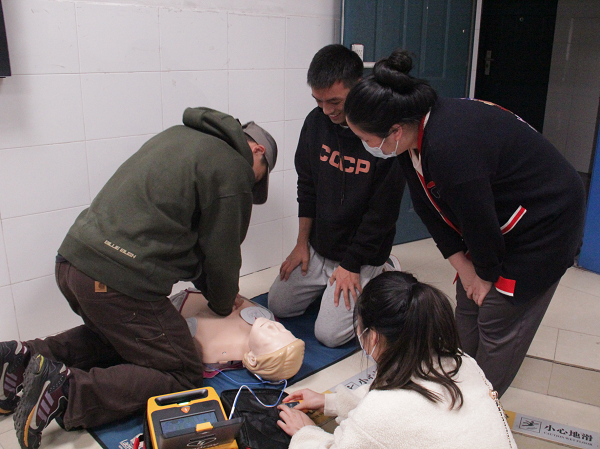 此次课程以“远离意外伤害——自救他救保平安”为主题。课程伊始,张兴文例举了工作中遇到的急救实例,他打破了“遇事依赖专业人员”的错误观念,为同学们树立了“黄金4-6分钟”的理念。随后,他选取心脏骤停和意外伤害这两个案例进行对策分析。他从专业定义、发病表现这两个方面介绍了什么是心脏骤停,讲述了心脏骤停的紧急救护方法——心脏复苏法;具体讲解了关节扭伤、狗咬伤、烧烫伤以及煤气中毒这四个不同的意外伤害情况及急救手段。同时,在实际操作环节中,张兴文带领同学们现场体验了心脏复苏法,让知识融入实践,加深了同学们对急救技巧的理解。