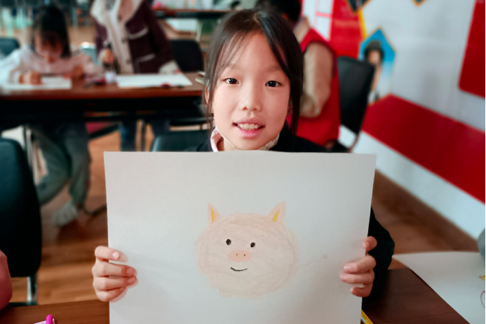 小朋友展示画作