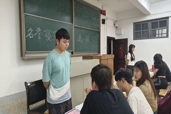 竞选者依次进行面试,他们就生活经历以及见闻阐述了自身竞选优势。面试官对竞选者的组织管理能力,对学校周边环境的了解程度和关于新生迎新工作的想法等方面进行考察。新生班导覃卫民认为名誉寝室长需要具备较强的责任心,关爱帮助新生,站好新生第一岗,帮助新生建设和谐文明寝室。