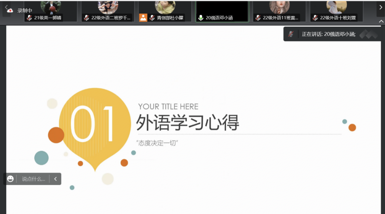 (通讯员 郭婧 周子楠)传经授道,携手并进。12月3日下午,外国语学院团委举办外语学习经验交流分享会。本次分享会由2020级俄语专业本科生邓小涵主讲,团委青创部负责人杜小朦主持。
