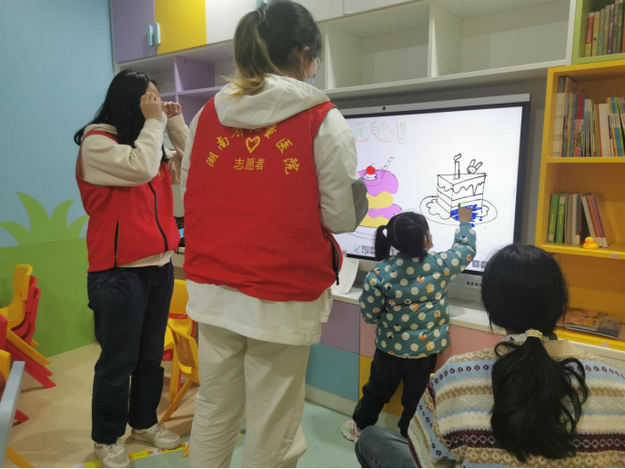 活动当天,志愿者们提前到达了湖南省儿童医院迪士尼欢乐屋去领取志愿服,随后便开始了志愿活动。志愿者手把手教导孩子们画画,学习手工,搭积木等,陪伴孩子们玩游戏、看书,锻炼孩子们的动手能力,拓宽孩子们的知识视野,让孩子在手工和书籍中受益并得到乐趣。