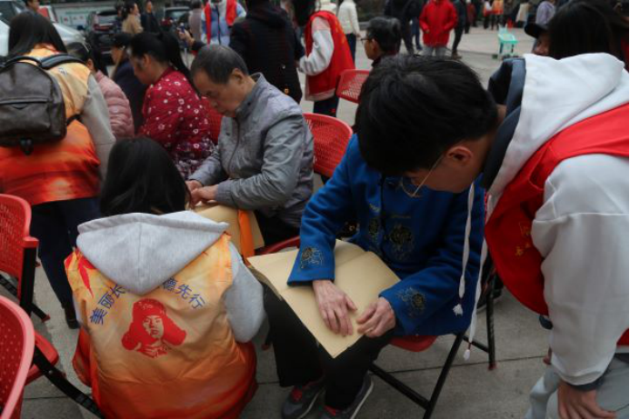 志愿者与参与活动老人合影