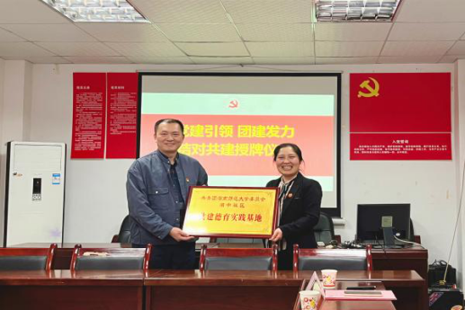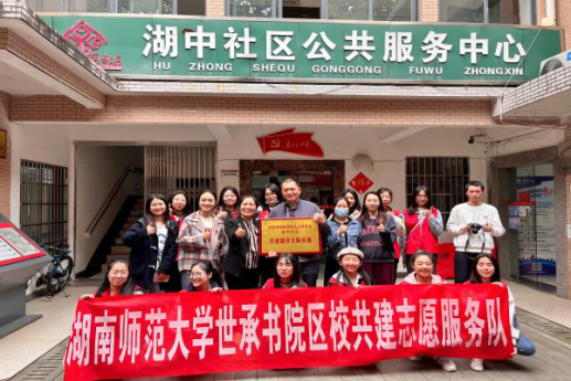 李佳、罗艳分别代表区校双方签署太阳成集团tyc世承书院与长沙市岳麓区湖中社区区校共建协议,挂牌建立“太阳成集团tyc与湖中社区共建德育实践基地”,全体参会人员于湖中社区公共服务中心前合影留念。