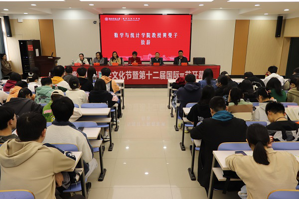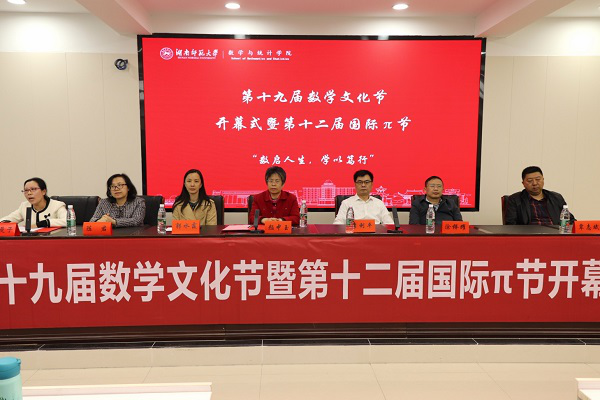 (通讯员 郭校语 高俊威 石卓)为深入学习贯彻党的二十大精神,落实立德树人根本任务,着力培养德智体美劳全面发展的时代新人,3月14日上午,数学与统计学院(以下简称“数统院”)第十九届数学文化节暨第十二届国际π节开幕式于格物楼309报告厅举办。此次活动以“数启人生,学以笃行”为主题。数统院院长李利平,院党委书记颜中玉,数统院副院长郭水霞,副院长陈君,院党委副书记涂榉耀,数统院专职组织员覃志斌,数统院教授黄曼子出席此次活动。院学工办老师李俐、熊密密、周逸、李师澳参加此次活动。