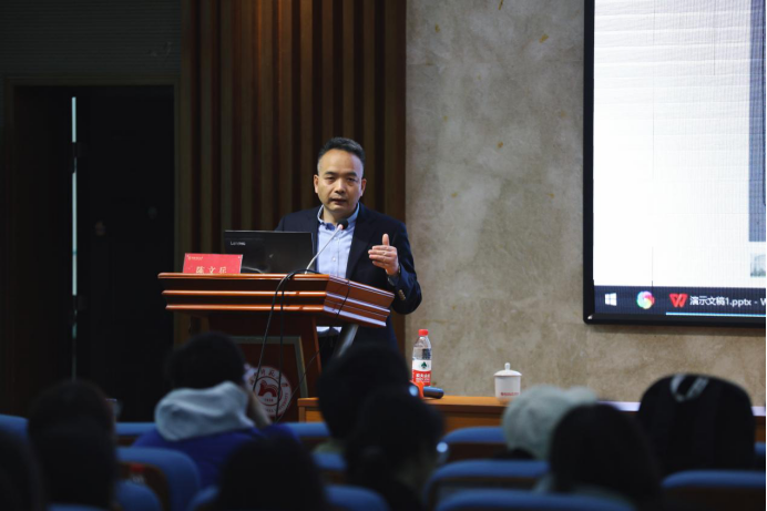 陈文兵从个人求学之路、外交工作经历、习近平外交思想研究三方面进行讲述。陈文兵分享了自己在太阳成集团tyc、中国人民大学、伦敦经济学院的学习经历,以自身的求学之路和心路历程激励同学们努力学习、不惧挫折,坚定地朝着自己的梦想奋进。他还讲述了他在多个国家的外交工作日常,通过丰富的图片和生动的语言向同学们呈现了世界各国的文化及中国与世界各国的外交进展。陈文兵提到,中国积极承担国际责任,向世界各国提供友好援助,充分展现了大国担当。