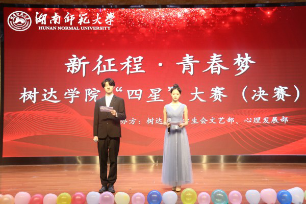 (通讯员 李珂欣 邓磊 许敏婕)3月9日中午,树达学院学生会文艺部、心理发展部于树达楼113报告厅举办第二十四届“四星”比赛决赛。院学工办副主任、学生会指导老师李青、文法系团总支书记杨海霞、理工系团总支书记朱继来、教师教育系辅导员胡维宇出席并担任此次比赛评委。2021级播音与主持艺术专业的麻俊和2020级播音与主持艺术专业的于歆钰担任主持人。