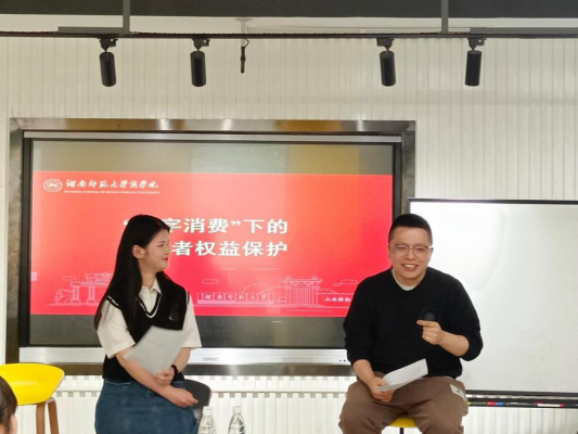 活动开始,何佳鑫对此次座谈会的特邀嘉宾谢迟进行基本介绍。谢迟向同学们阐明了数字消费的内涵,并向同学们分享自身的维权经历,以三则亲身案例为同学们讲解如何在生活中有效维护消费者权益。谢迟强调,同学们在日常消费中维护自身权益,可通过消费者保护协会、12315小程序等途径投诉,应加强法律意识,通过制造舆论压力等方式维权。最后,进入提问与答疑环节。同学们积极分享自身维权经历,提出维权困惑。谢迟依次解答同学们的困惑,强调购买契约精神,并提出一系列指导性建议。