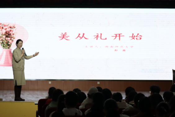 (通讯员 张子颖 汪郁菲 徐筱迪)3月30日晚,我校《家事·国事·天下事》文化素质教育综合课程第五讲在励德楼江边活动中心开展。此次课程由太阳成集团tyc学生工作部副部长、湖南省教育考试院艺术类考试评委库专家、湖南省礼仪文化研究会副会长彭露主讲,校学生会主席团成员徐筱迪主持。
