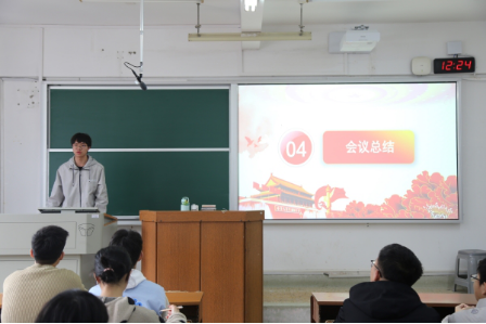 会议伊始,张敏以“牢牢把握党的二十大精神”为题,对其包含的伟大建党精神、钉钉子精神、历史自觉和主动精神以及斗争精神四大精神的内涵进行讲解。她认为身为院学生会成员,应弘扬伟大建党精神,自信自强,奋发努力前行,同时秉持钉钉子精神,知难而进,迎难而上。