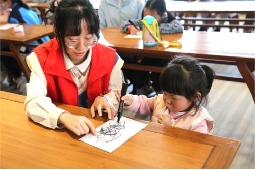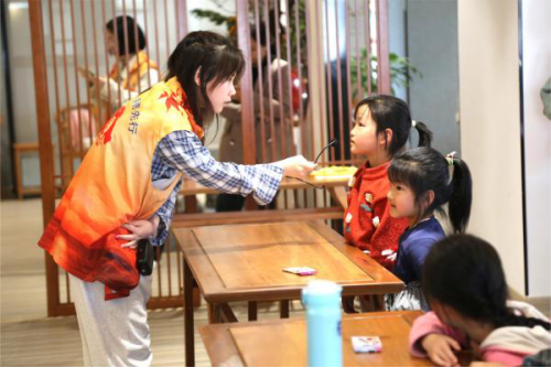 志愿者帮助小朋友画画
