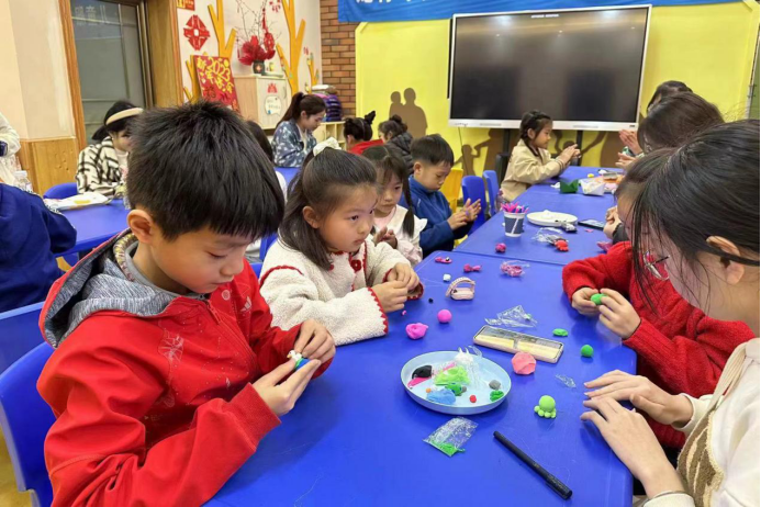 此次活动包括海洋动物知识科普和趣味手工两个环节。王妍为小朋友们讲解海洋动物的相关知识,介绍一些动物的外形与习性并提出问题与小朋友进行互动。在志愿者们的帮助下,小朋友根据自己的想象力用不同颜色的超轻黏土制作小动物。小朋友彼此交流互助,共同完成更多海洋动物的捏制。