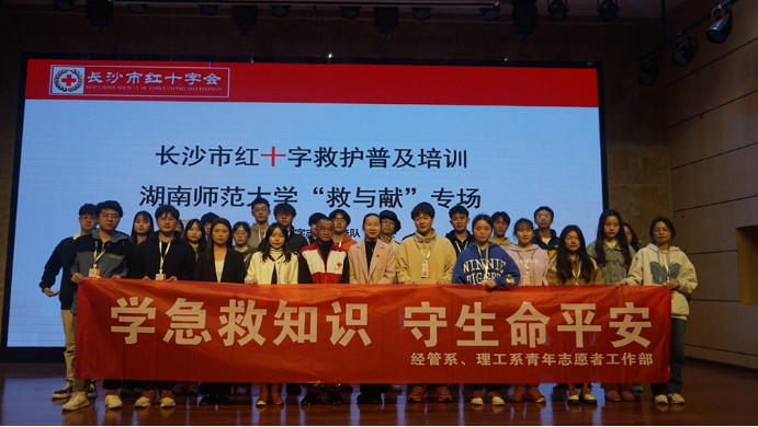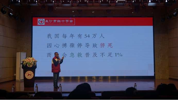 (通讯员 何缨 高陈成 罗娜)为强化校园应急知识教育氛围,提高学生安全意识,4月6日下午,树达学院经管系、理工系于树达楼113报告厅举行以“学急救知识,守生命平安“为主题的急救知识培训会。院团委副书记龙珊、经管系系主任杨龙和、理工系团总支书记朱继来、经管系团总支书记王贞、经管系辅导员刘浩月出席活动。长沙红十字会志愿服务队孙怀东担任此次培训会主讲人。