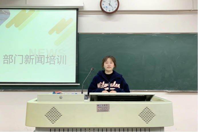 此次培训会由讲解照片要求和介绍新闻格式两部分组成。龙婵向同学们说明新闻稿中的照片规范,并以呈现合格照片的方式来讲解拍摄时应注意的问题。冯鑫结合新闻稿为同学们说明新闻中标题、图注、正文和字体的要求。她提醒同学们要简练、统一语言,不要出现口语化。