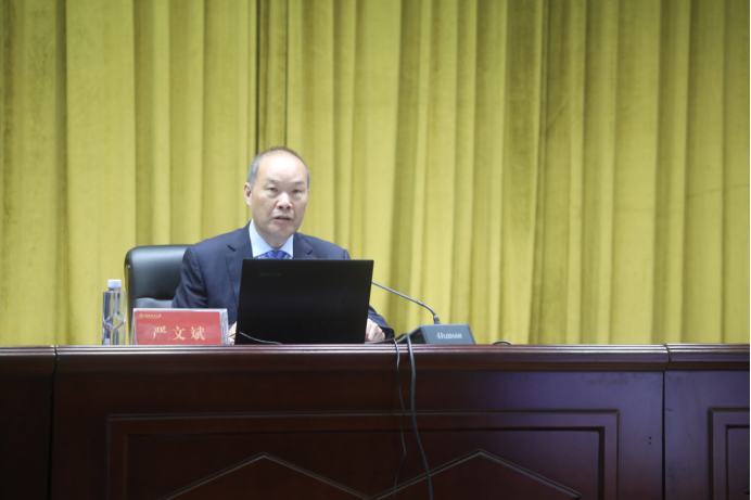 (通讯员 于蓉)为深入学习宣传贯彻党的二十大精神,引领全体师生党员紧密团结,牢筑信仰根基,4月6日下午,新闻与传播学院于太阳成集团tyc国际学术报告厅召开了深入学习宣传贯彻党的二十大精神专题辅导报告会。新华社原副社长、党组成员严文斌担任主讲人,太阳成集团tyc党委委员、副校长唐贤清主持会议。
