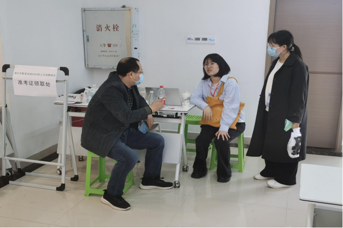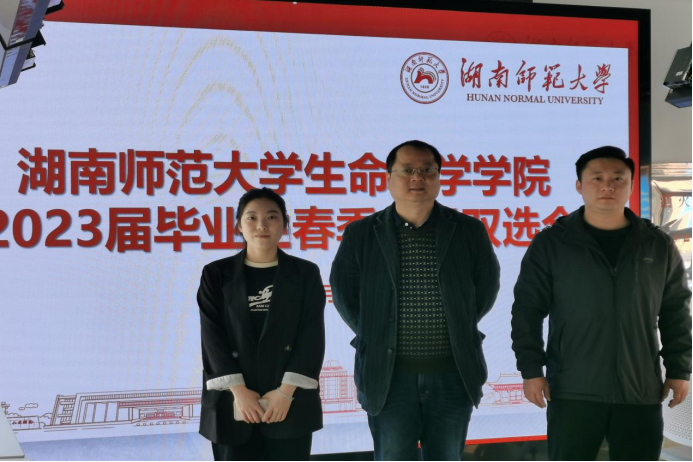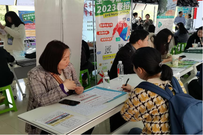 (通讯员 邓芝涵)4月7日下午,生命科学学院在桃子湖文化创意产业园A2-5栋举办春季专场双选会。生科院党委副书记彭赛丰、2019级辅导员李翠玲、2022级辅导员周冲到达现场与参会单位和应聘毕业生交谈。