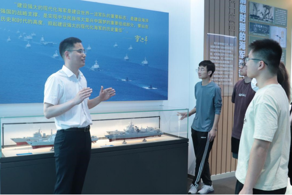 在肖劲光故居,同学们参观学习了肖劲光的生平和革命历程,观摩了他对中国人民海军建设事业所作出的贡献。在近现代海军装备主题展馆,同学们了解了鸦片战争以来的海军武器装备演变,学习了人民海军成立以来舰船装备从仿制到创新超越、从沿岸近海到走向深远海的代表成果。随后,罗薇开展了“缅怀革命先烈 赓续革命精神”的主题授课,主要带领同学们在故居中回顾“终身海军司令”肖劲光青年时期的革命斗争历程,勉励青年学生们学习革命先烈,赓续红色血脉,弘扬以伟大建党精神为源头的革命精神。
