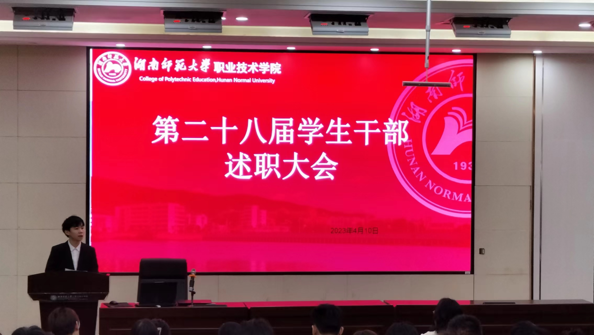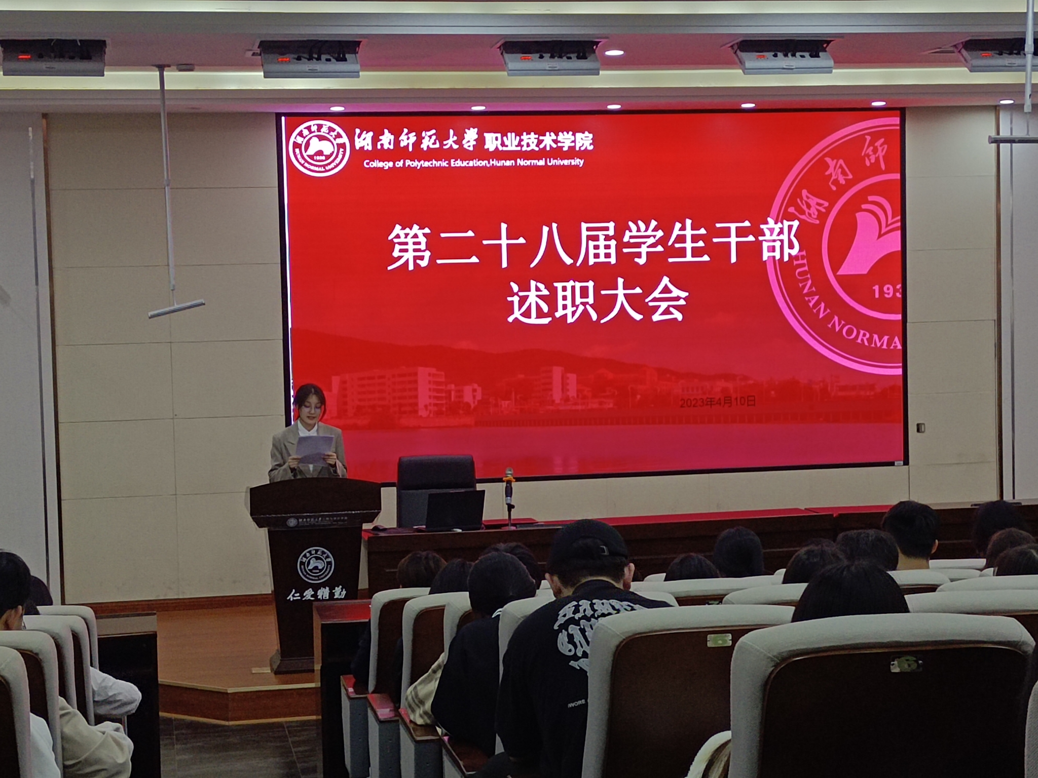 (通讯员 刘明芳 张皓月)4月10日晚上,工程与设计学院在后栋二楼报告厅举办第28届学生干部述职会议。院团委青年发展工作部负责人宋莉主持本次会议。参加此次会议的有工设院第28届全体学生干部以及部分学生代表。