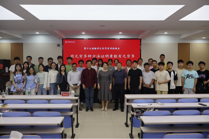 (通讯员 郭校语 刘薇 曹慧娟)5月15日下午,数学与统计学院(以下简称“数统院”)于格物楼309报告厅举行第十九届数学文化节系列讲座五。此次讲座以“用无穷多种方法证明素数有无穷多”为主题,北京大学数学科学学院教授肖梁担任主讲人。我校副校长谢资清、数统院党委副书记涂榉耀、我校第十一届湖南省青年科技奖获得者汪波、我校数学教育教研室主任蒋培杰出席此次讲座。数统院各年级部分研究生、本科生参加此次讲座。