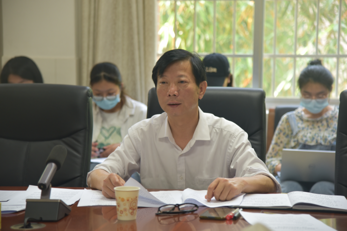 会议围绕部署学院学习贯彻习近平新时代中国特色社会主义思想主题教育、进行党建党务的工作安排两个方面展开。陈胜国首先对学院学习贯彻习近平新时代中国特色社会主义思想的动员工作作出了肯定,强调“我们行动的指导必须靠先进理论的武装”。他以院党委发布的四个文件为基础,从四个方面部署了下一阶段学习贯彻习近平新时代中国特色社会主义思想主题教育工作。一是要坚持铸魂育人导向,深入教育研讨,结合一月一片一课一实践讲好专题党课,创新理论学习形式。二是要坚持求真务实,积极准备调研工作,深入开展调查研究。三是要坚持真抓实干,推动学院高质量发展。四是要坚持自我革命,抓好整改整治工作,及时发现问题,做好评估工作。陈胜国指出,党支部当前的主题教育应当抓好理论学习和调查研究工作。在第二个环节中,陈胜国分别介绍了第十九期党员发展计划和情况、预审和政审的相关内容,预备党员的转正注意事项,以及毕业生党员的清理和接受新生党员的工作。他指出,法学院党支部工作仍然存在虚化、弱化现象,希望法学院党支部干部能够就此次党支部书记会议召开支委会和支部党员大会,传达学院党委文件通知,落实教育、调研、清理毕业党员档案等工作。此次党支部书记会议的召开,对下一阶段的党务工作做出了明确部署,为接下来党务工作的有序开展奠定了坚实基础。