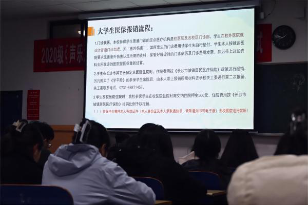 (通讯员 姚苏萌 廖莞芊 伍汶翔)3月29日晚,音乐学院权益部于和乐楼308教室开展“医保学平都在手,健康安全我都有”主题宣讲会。各年级学生代表参加,权益部廖莞芊担任此次活动主讲人。