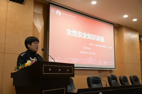 (通讯员 余秋蓉 付亓 龙皙婷)为了提高女生们的自我保护意识,普及女性生命安全相关知识,音乐学院学生会在3月24 日中午特邀橘子洲派出所民警李慧雅于和乐楼108开展此次女性安全知识讲座。