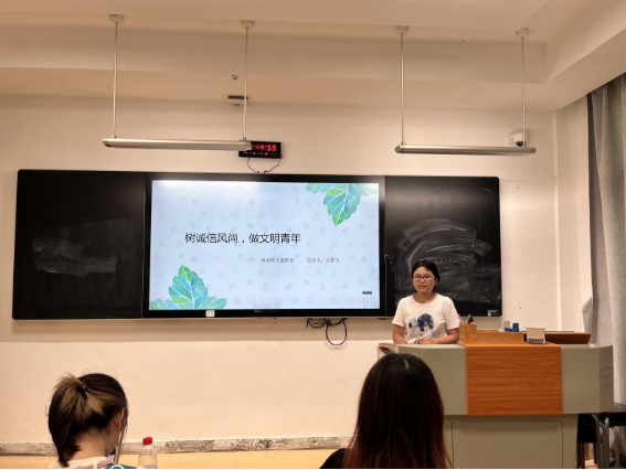 外国语学院26个班级积极开展了以“树诚信风尚,做文明青年”为主题的班会。各班主讲人全面地为同学们讲解有关诚信的知识。讲解结束后,同学们积极发言,分享自己的所思所悟。许多同学表示,时代在发展,各种诱惑与挑战也在更新迭代。因此,我们更应该要努力做诚信笃实的好青年,将诚实守信的品质落实在行动中,恪守诚信原则,维护学术道德规范,务实进取,提升自身诚信意识。