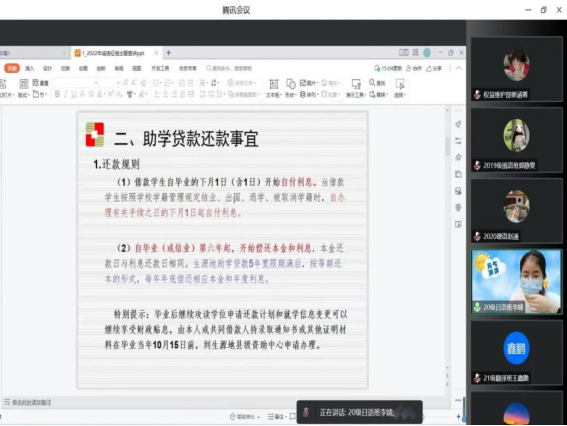 在“诚信、征信”主题宣讲会上,外国语学院优秀资助宣传大使李婧为同学们讲解有关国开行助学贷款及还款的相关事宜,并耐心解答同学们提出的在贷款及还款过程中遇到的各类问题。外国语学院资助专干王昭春组织助学贷款毕业生进行还贷确认,并对其进行还款教育。在教育会上,王昭春系统地向同学们普及诚信及金融知识,介绍还款办理程序及相关政策,强调了按期还贷的重要性,提醒同学们失信行为将带来的不良影响。