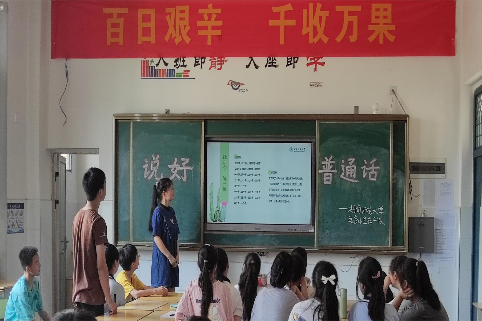 (通讯员 王如心 江亚轩 黄苏琳)7月4日上午,我校教育科学学院赴冷水江市中连乡暑期社会实践团于诚意学校开展普通话推广活动。此次活动由实践团成员沈丽莉、刘章明、向凯峰、黄苏琳主讲,初一、初二全体学生参加。