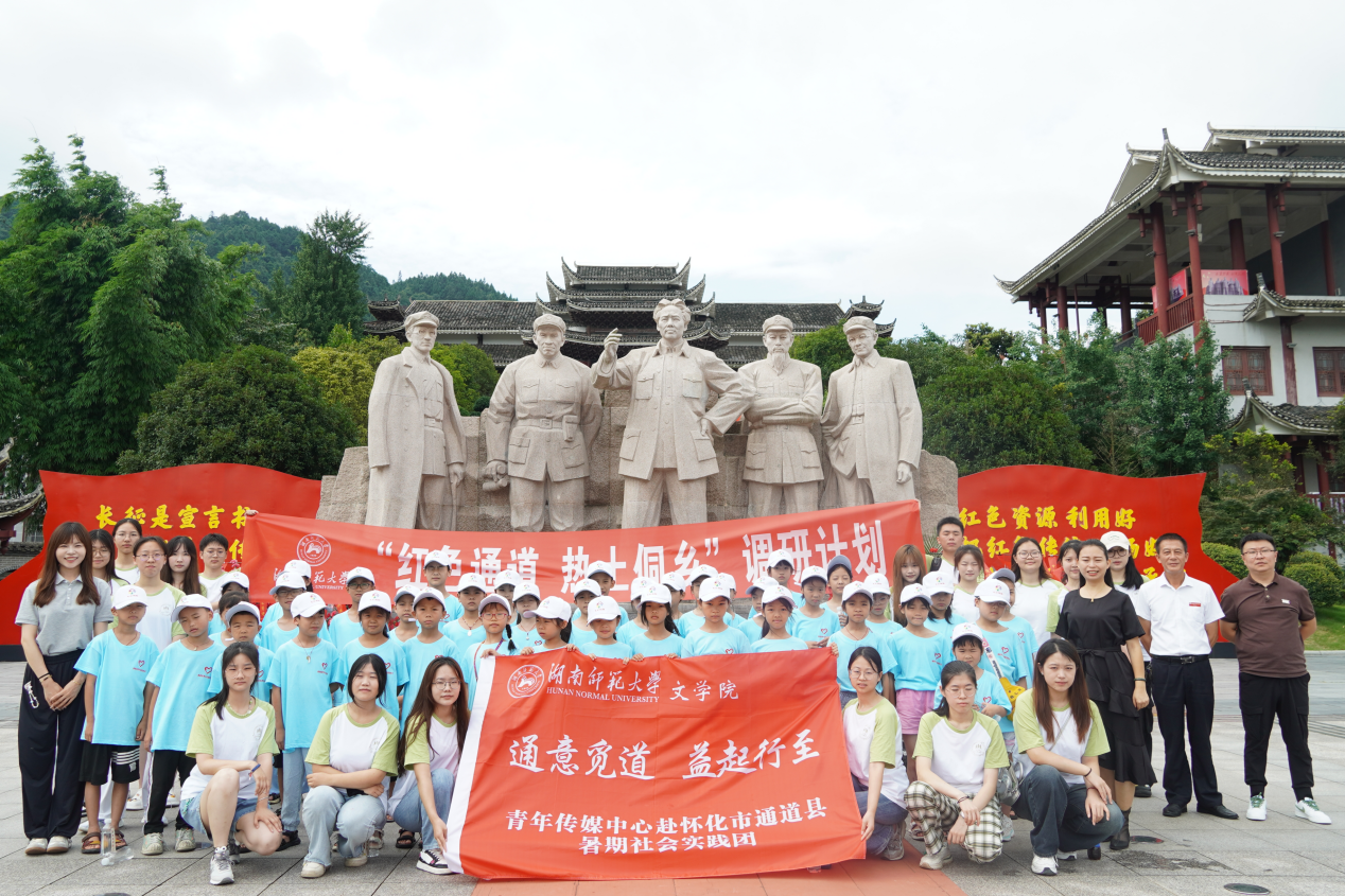 活动最后,领导老师、实践团成员和小朋友们在通道转兵纪念馆的雕塑前合影留念。此次活动拉近了实践团与小朋友们之间的距离,为后续活动的开展打下坚实基础。