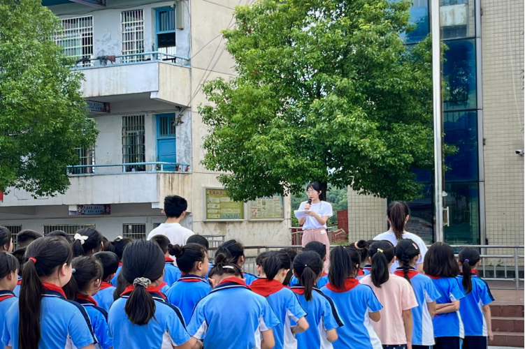 7月7日上午,实践团正式举行“三下乡”暑期夏令营开班仪式。筲箕湾镇中心小学主任熊明恺对二十位师大志愿者的到来表示欢迎。他提出,希望实践团队能够深入乡村校园助力学生全方位发展,同时也鼓励志愿者们擦亮青春底色,在火热的实践中增长才干,通过亲身奋斗明确奋进方向。团队负责人刘凤玲表示,实践团将以“立足德智、实践育人”为初心,积极开展特色兴趣课程、美育系列活动、素质拓展活动和以红色论坛为主的主题论坛教育的教学活动,致力于学生品格的塑造,将“育”浸润于“教”的过程之中。