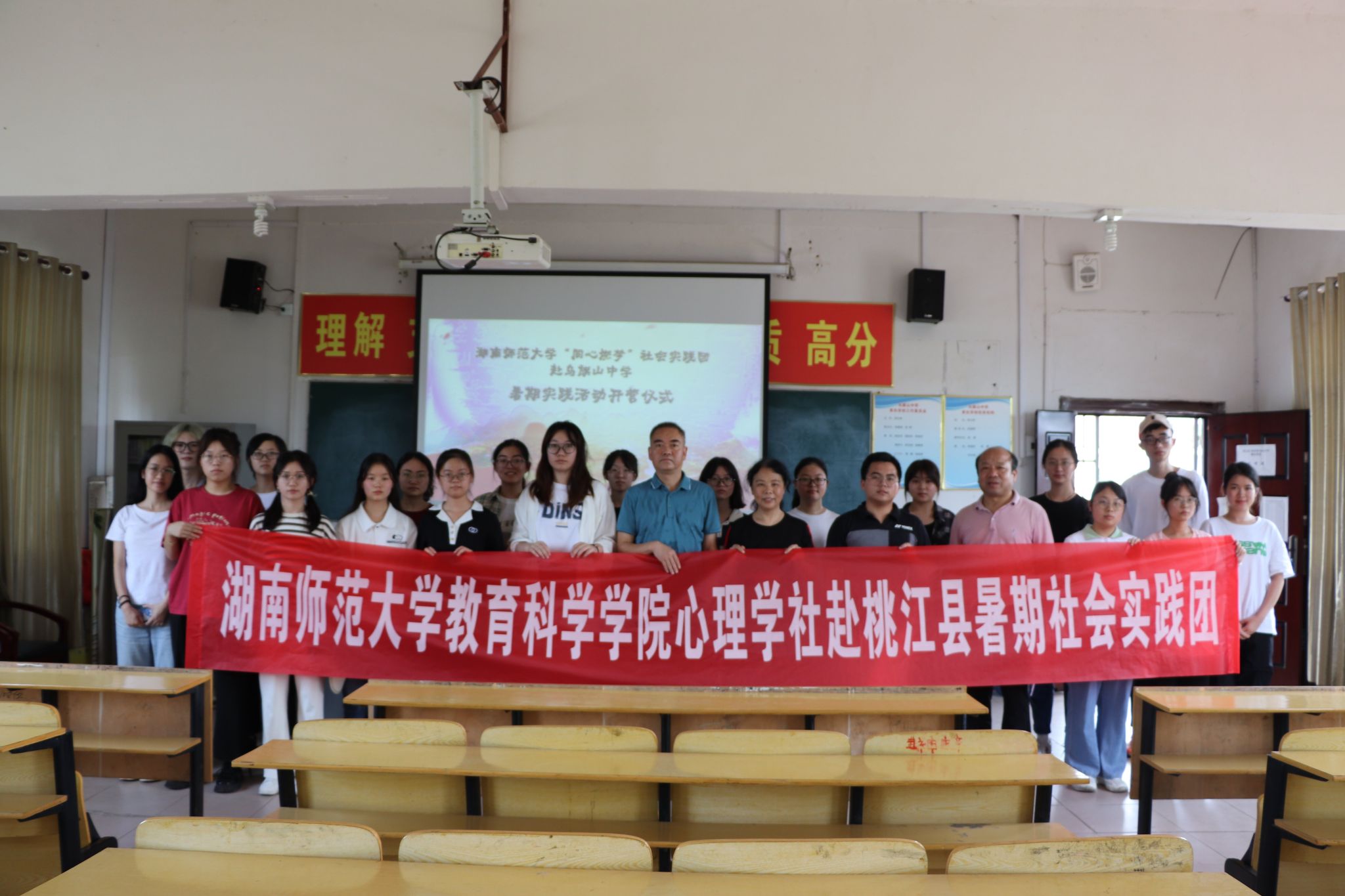 (通讯员 欧阳熙 李欣爱)7月4日上午,教育科学学院心理学社赴湖南省益阳市桃江县三堂街镇乌旗山中学的“同心燃梦”暑期社会实践团举办开营仪式活动,八年级班主任钟泽晶主持此次活动。