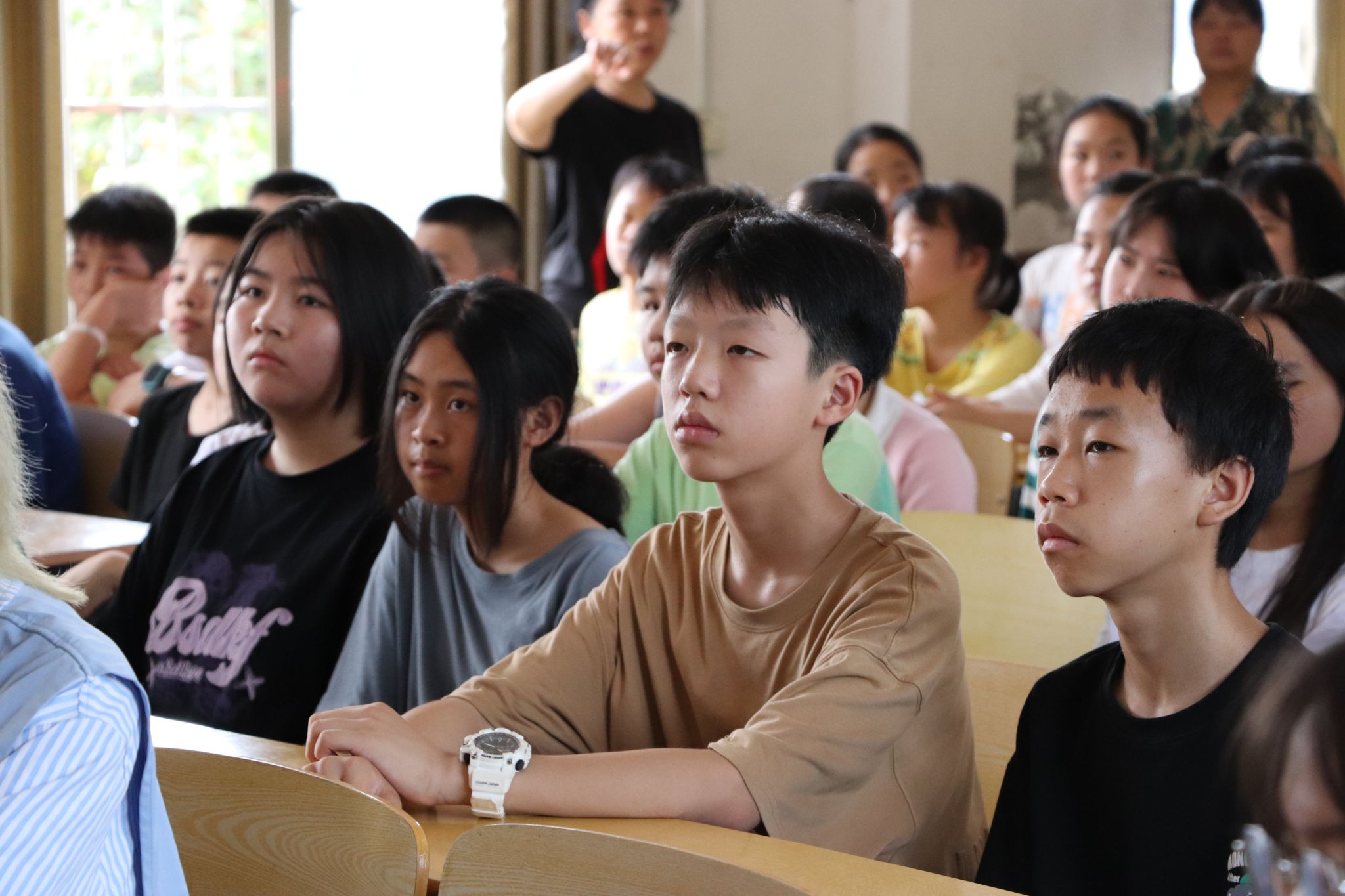 乌旗山中学学生听校长讲话
