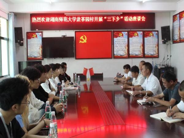 当天上午,当地开展了“三下乡”暑期社会实践座谈会。在座谈会上,支部书记杨焕和对实践团的到来表示热烈欢迎,并从历史进程、占地面积、地理位置、红色底蕴四方面综合介绍茶园村落情况。城步县委宣传部驻村工作队队长、第一书记杨平表示:“希望实践团成员全力完成任务,以红色文化为媒介,以兴趣爱好为导向,将先进的教学理念与活跃的思维运用于本次活动之中。”调研组组长黄楹楹将团队去年制作的《毛主席不收鲤鱼》绘图册向在场的村支部领导进行展示,并表示苗园村可以借鉴此类漫画绘本的形式,深挖当地红色文化资源,打造苗园村专属文化品牌。此次座谈会有效推动了苗园村村支部与实践团成员的沟通与交流,有助于后续活动的进一步开展。
