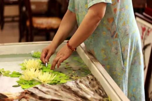 图为实践团成员拍摄的羽毛画制作工序