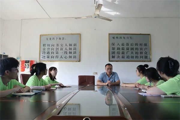 实践团调研组组长何忆莲对三湖镇政府工作人员进行采访