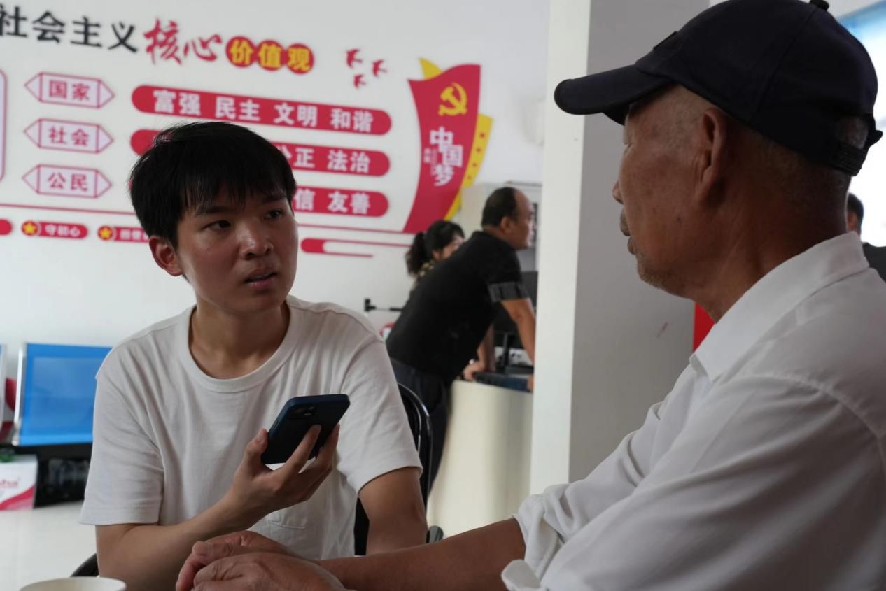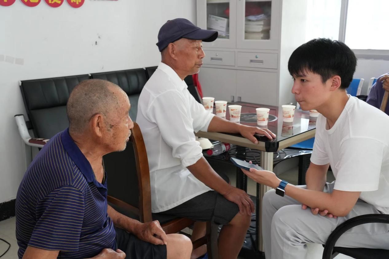 图为团队成员采访革命烈士覃辅臣后代覃大亚。