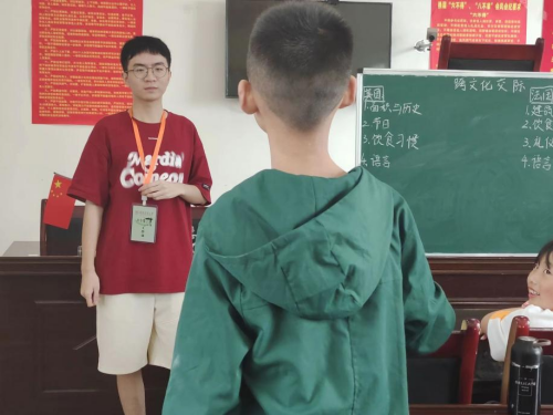 万宝村的教学活动分别由授课队员张嘉慧、李青筱、杨灵灿、薛中柱主讲。诗词鉴赏课中,队员张嘉慧通过专题的形式展开讲解,以南北文化差异为切入点,将诗人生平与写作风格串联,拓宽学生的文化视野,提高学生的文学鉴赏能力。防性侵教育课中,队员李青筱通过情景互动的方式,组织学生辨别恶意侵害行为与正常肢体接触,提高学生的防侵害意识,加强自我保护能力。跨文化交际课中,队员薛中柱从历史、节日、语言与饮食习惯等方面向学生讲解了各国不同的地域特色,拓宽学生知识面,了解文化差异。