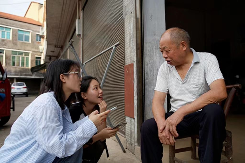 实践团成员与当地村民交谈