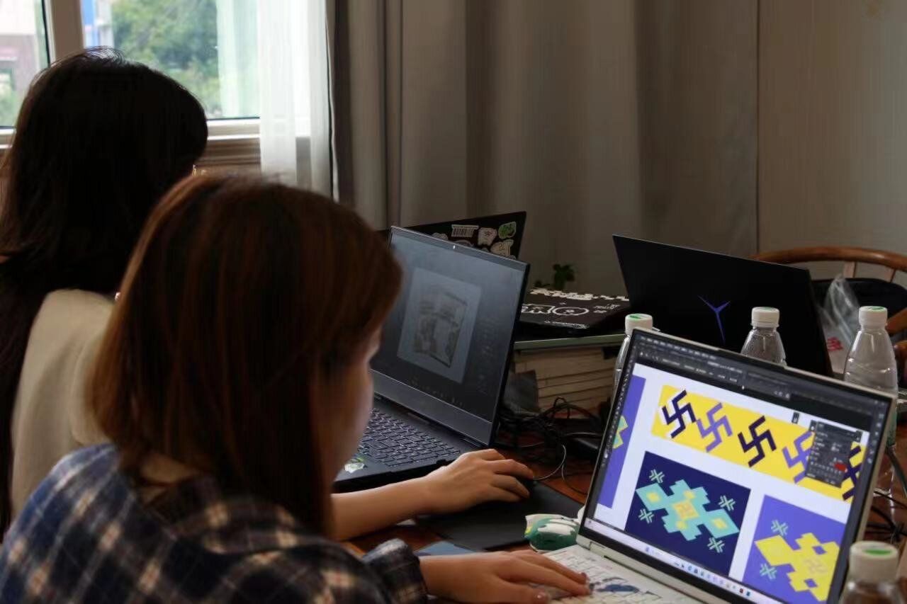 实践团设计组成员根据整理的相关纹样,进行了一系列非遗品牌和相关衍生产品的设计和制作,将传统非遗元素与现代的消费需求、审美取向、工业设计、时尚创意等有机结合,让非遗更好地对接现代生活,进一步结合市场,激活非遗保护传承的载体,为非遗赢得可持续发展的未来。宣传组成员也帮助拍摄制作了相关宣传照片和视频,促进传统非遗在现代社会焕发生机活力。此外,调研组成员也前往非遗保护中心进行相关调研,进一步了解非遗传承及保护,为日后相关保护方案的制定提供一定的理论支持。