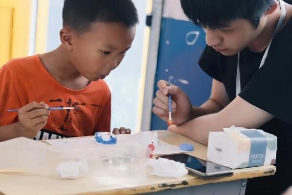 执笔细细涂彩,绘就缤纷童心。此次活动丰富了孩子们的校园文化生活,加深了团队成员与孩子们的交流与感情,孩子们在彩绘石膏娃娃的同时,也为他们的童年绘上了别样的鲜艳色彩。