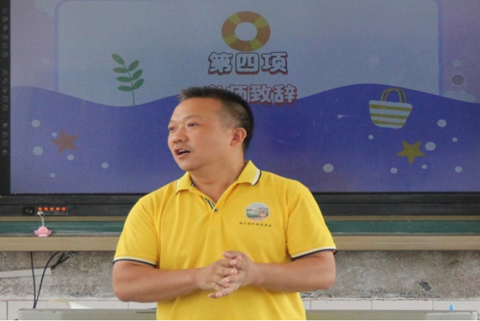 在学生代表发言环节中,楠木铺九校学生向泽湘、郑明阳作为学生代表分享了关于此次暑期创意活动班的体会和感悟。随后,向成进行活动致辞,总结了此次暑期创意活动班的开展情况和成果,对调研组成员的教育志愿服务活动表示感谢,并教育学生要树立奉献和责任意识,努力奋进,积极进取。