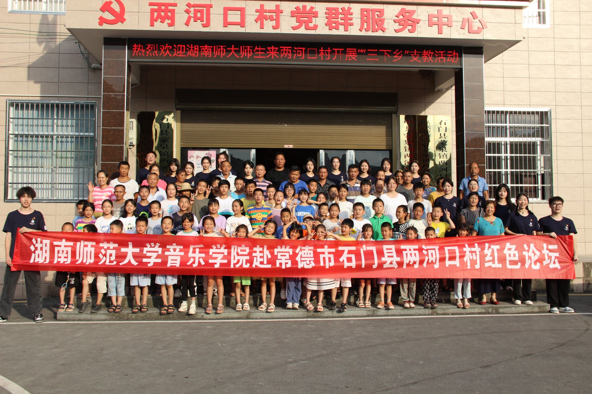 (通讯员 程鸿宇 周律敏 陈佳怡)为深入学习红色革命精神,以美育助力乡村振兴战略,7月11 日下午,我校音乐学院赴常德石门县蒙泉镇两河口村暑期社会实践团开展以“跨时空音乐之旅”为主题的红色论坛活动。实践团成员周律敏,程鸿宇担任主持人,两河口村党总支书记胡光安,蒙泉镇林业站站长文祥,蒙泉镇联村干部董明财受邀出席此次活动。