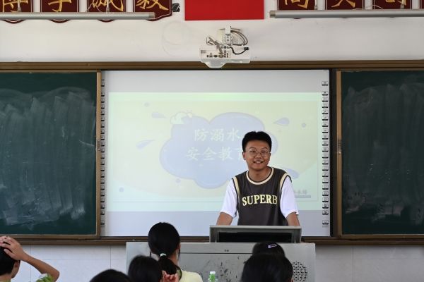 李承锦重点从溺水的过程,溺水的环境,发生溺水事故应如何进行急救三方面进行讲解。他通过播放防溺水案例视频,详细分析案例等,向学生们讲解防溺水的重要性,并就如何防溺水、溺水施救的方法、在哪些地方容易溺水、遇见溺水应如何施救等相关安全问题进行了详细宣讲宣传,引导同学们认识到防溺水的重要作用,做好守护个人安危的第一人。